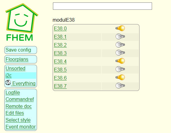define E38.0 readingsProxy modulE38:Port0 attr E38.0 room i2c attr E38.0 group ModulE38 attr E38.0 devStateIcon on:off:off off:on:on