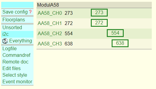 define AA58_CH0 dummy attr AA58_CH0 group ModulA58 attr AA58_CH0 room i2c attr AA58_CH0 setList state:slider,0,1,1023 attr AA58_CH0 webCmd state