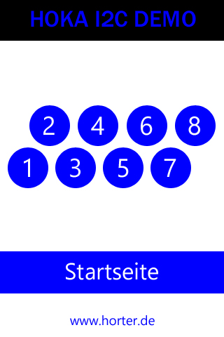 Auf dieser Bildschirmseite sind acht runde Knöpfe eingebaut, mit denen man die Ausgänge der I2C-DO Baugruppe steuern kann.