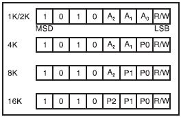 Über die Adress-Eingänge lassen sich je nach EEprom-Typ bis zu 8 Bausteine adressieren |