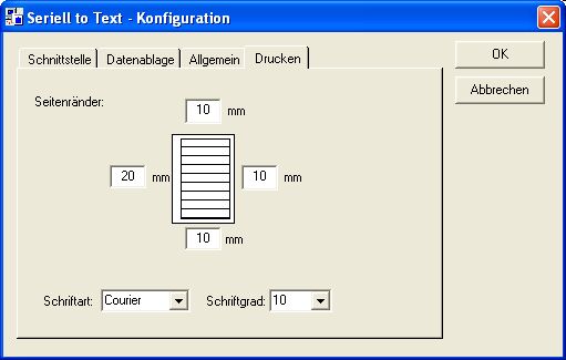 Die Seitenränder, Schriftart und Größe kann unter Konfiguration